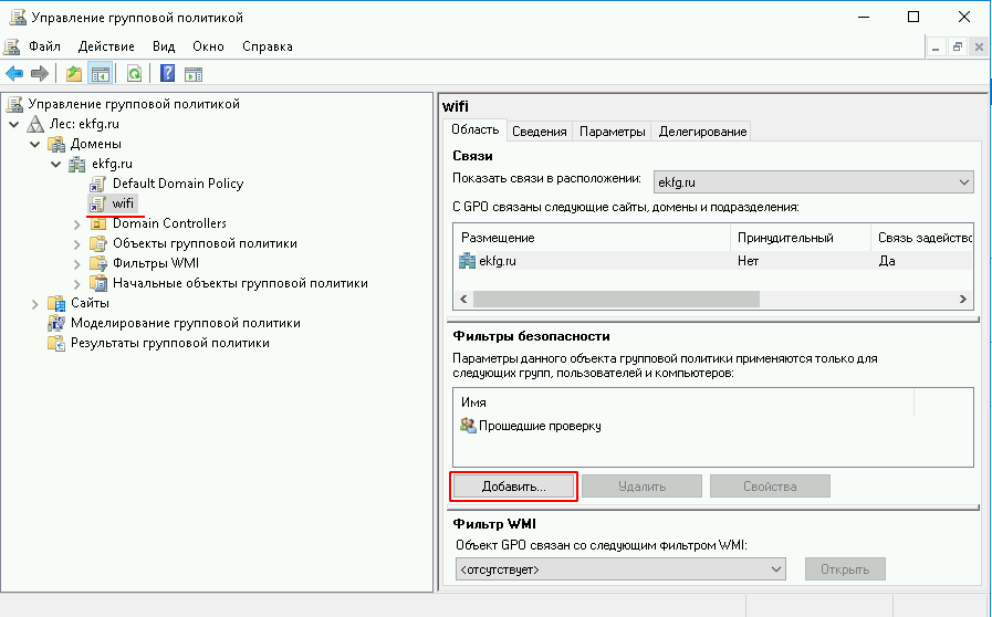Сейчас мы добавим группу на которую будет распространятся данная политика.