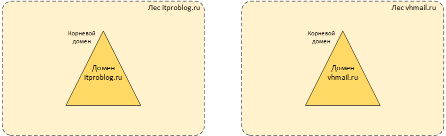 Ниже изображена схема одной из наиболее распространенной и простой топологии – один лес и один домен
