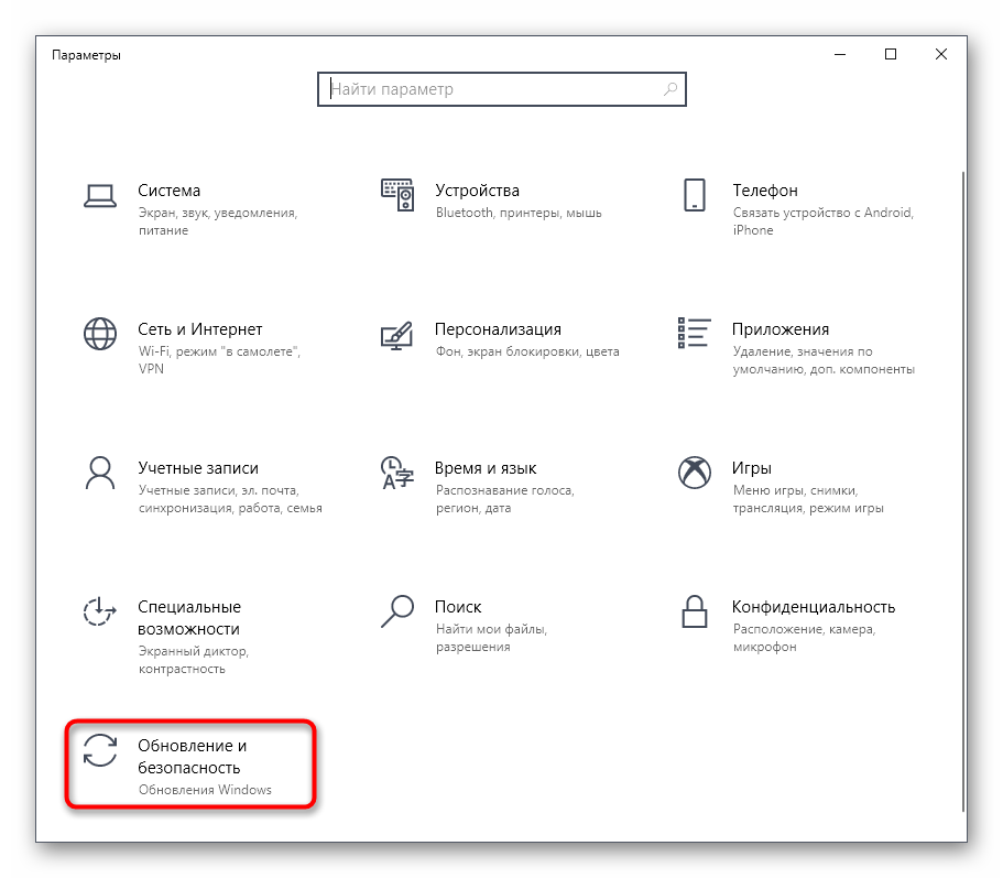 Теперь через то же меню «Параметры» перейдите в «Обновление и безопасность».