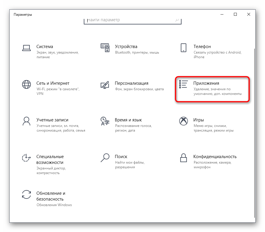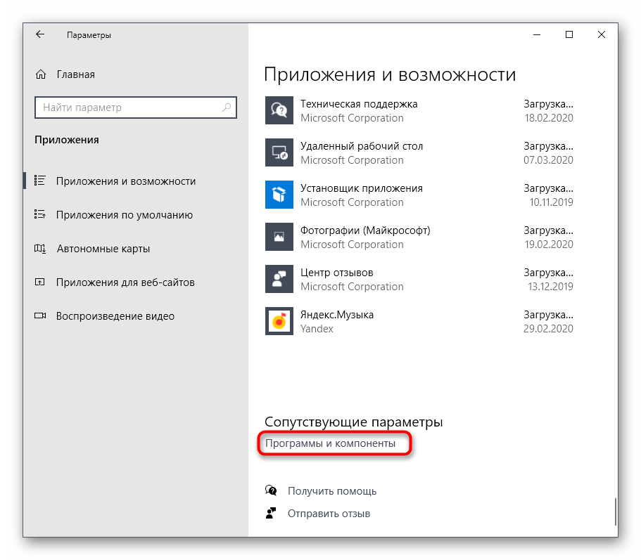 Опуститесь в самый низ списка, где кликните по надписи «Программы и компоненты».