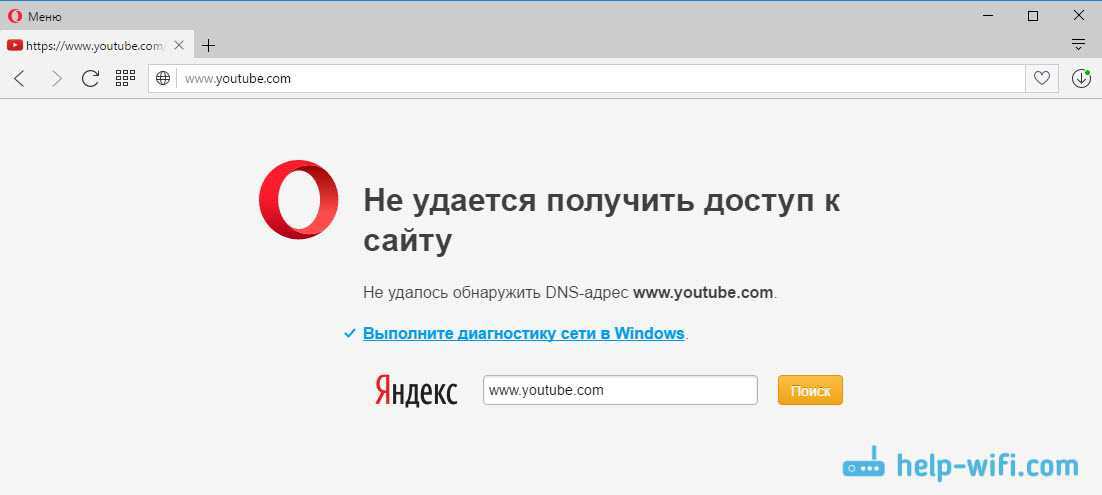 Как видите, у меня на скриншоте выше ошибка доступа к сайту youtube.com