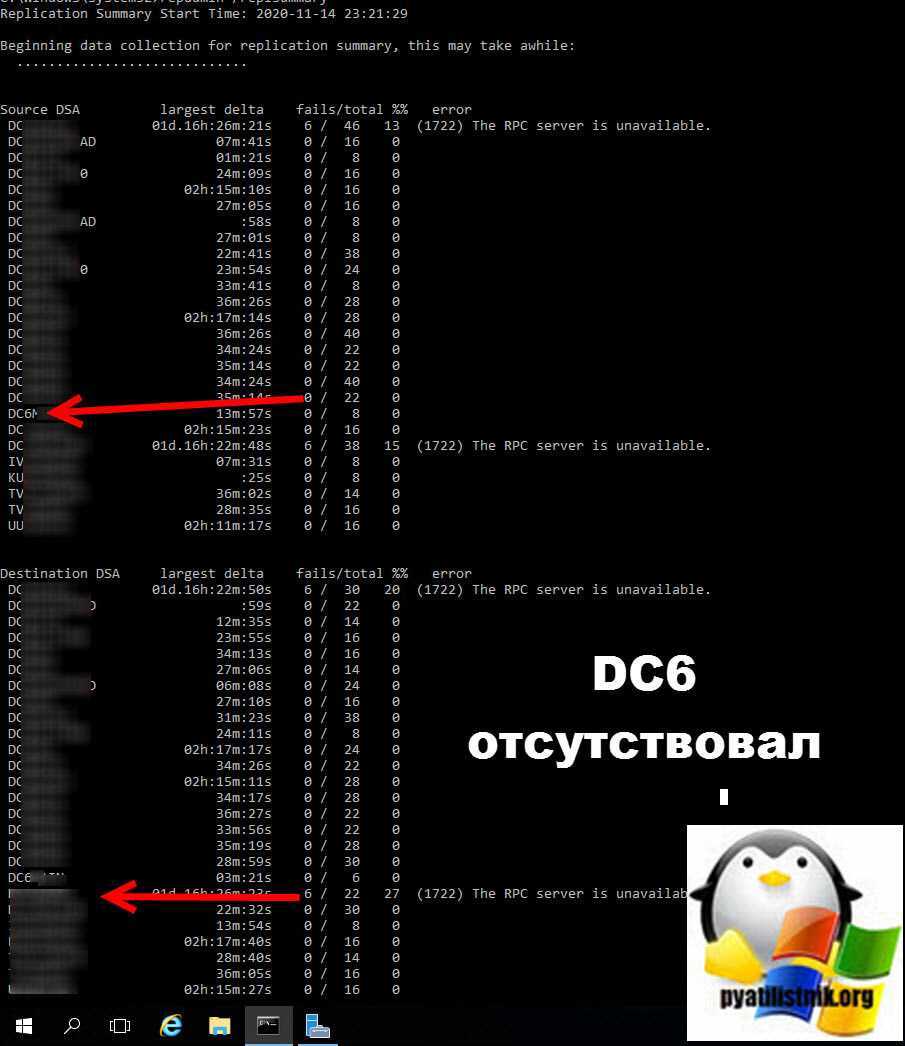 Получается так, что с частью контроллеров домена, данный DC6 общался, а вот часть не видел.