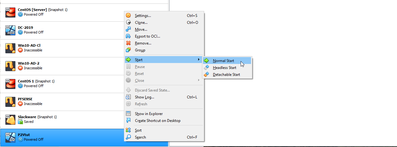 9. You can now start the VM. Select Normal Start as seen below.