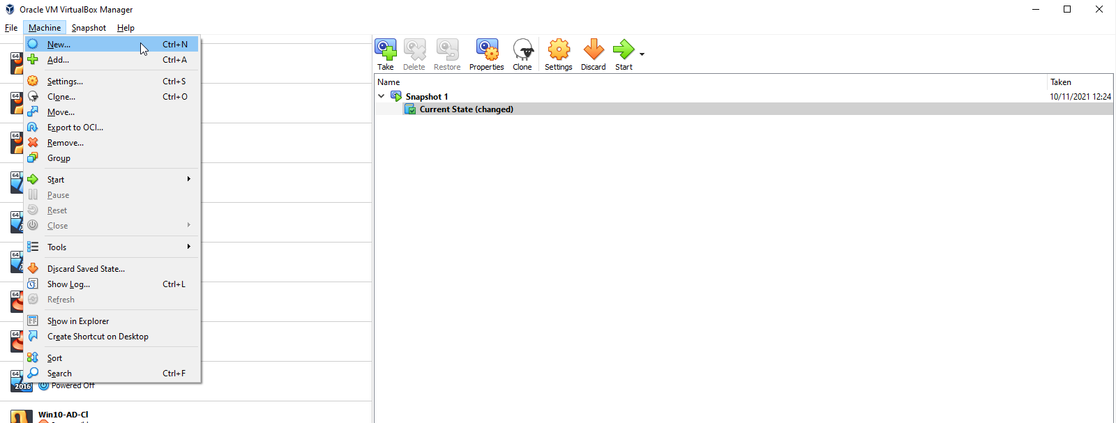 1. Open VirtualBox to follow along and then select New under the Machine menu