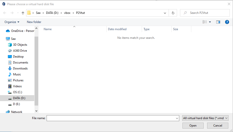 Navigate to the VHD file created in the previous section and select Open.