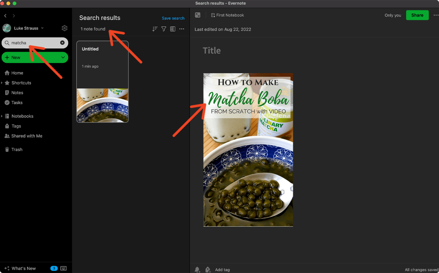 As you can see in the screenshot below, Evernote was able to identify the word «matcha,» despite it being written in a cursive font that mimics handwriting.
