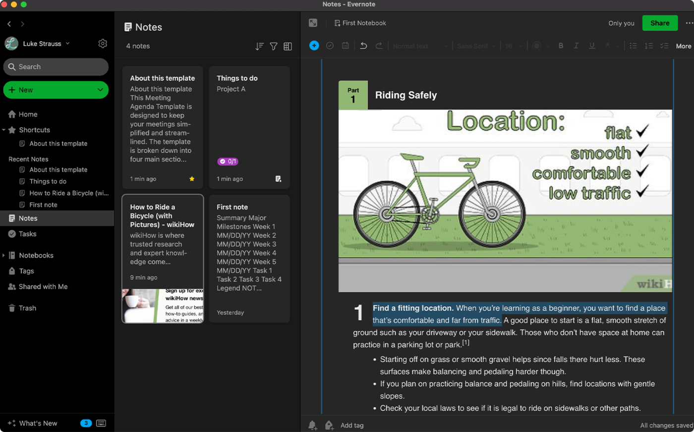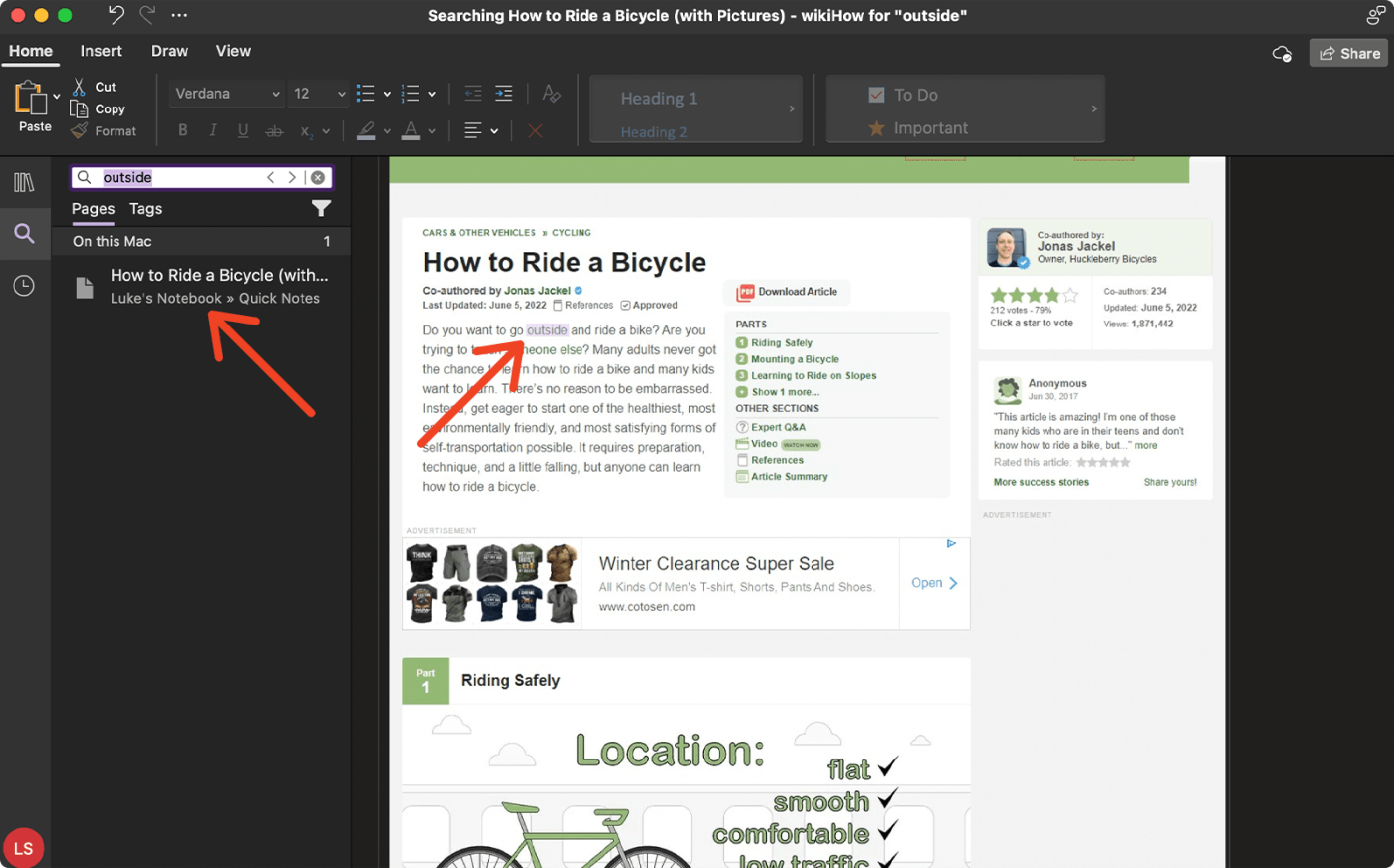 While both tools are powerful, I found Evernote’s web clipper to be most accurate and helpful. When I clipped an entire article on how to ride a bike, OneNote captured what seemed like a screenshot of the webpage. As a result, I was unable to interact with the text at all—the clipped webpage was just an image.