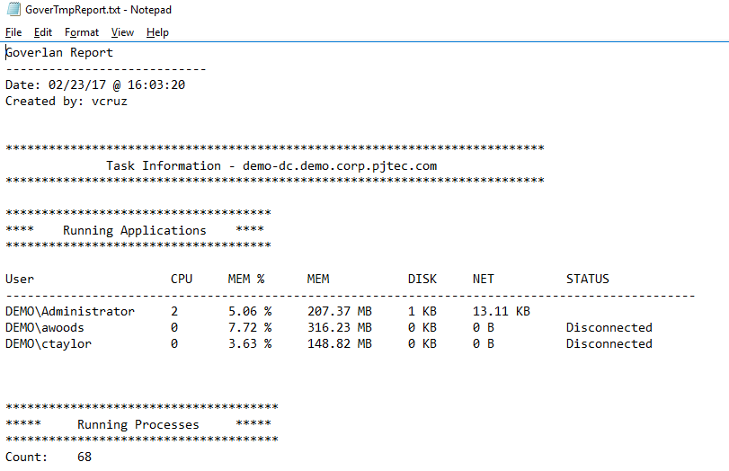 To export the information displayed by the Task Manager to a text file, click on the report button located at the top-right corner of the window.
