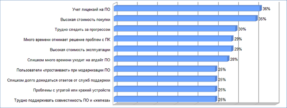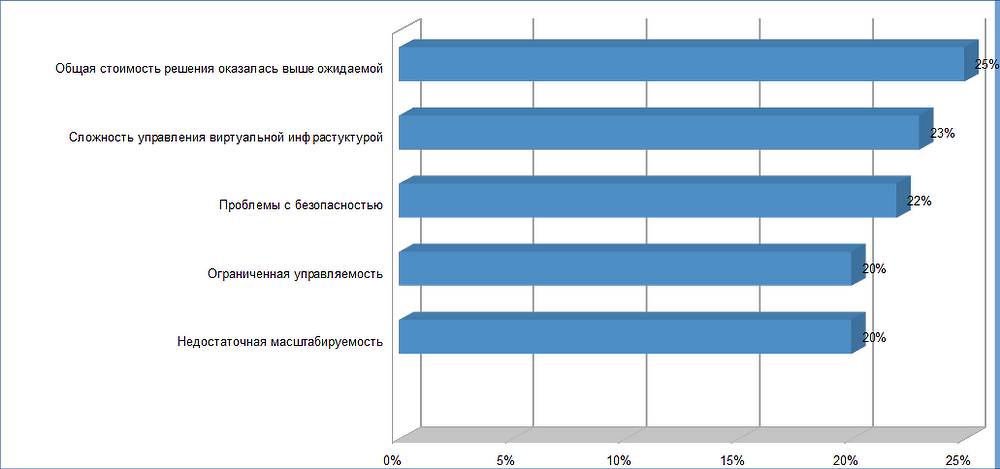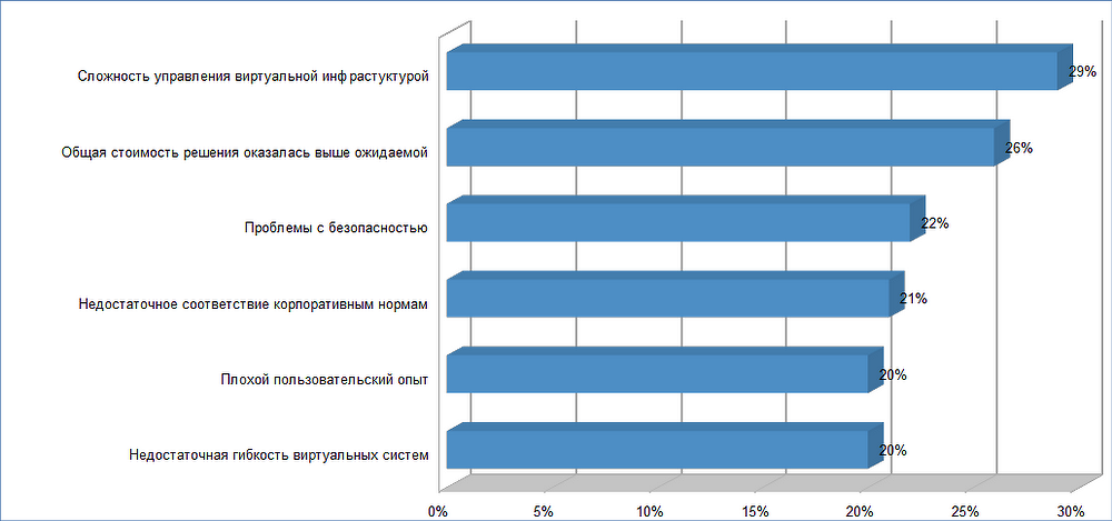 В ходе исследования ESG были поставлены и вопросы относительно того, что сдерживает внедрение виртуальных ПК на предприятиях. Самыми неприятными из них оказались достаточно высокая стоимость внедрения, а также сложность управления и поддержки виртуальных рабочих столов.