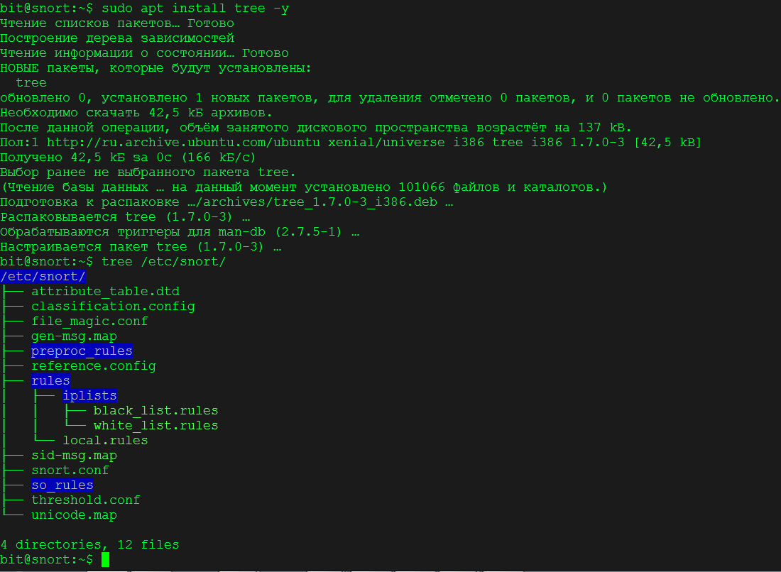Эта команда создаст файлы журналов в каталоге /var/log/snort.