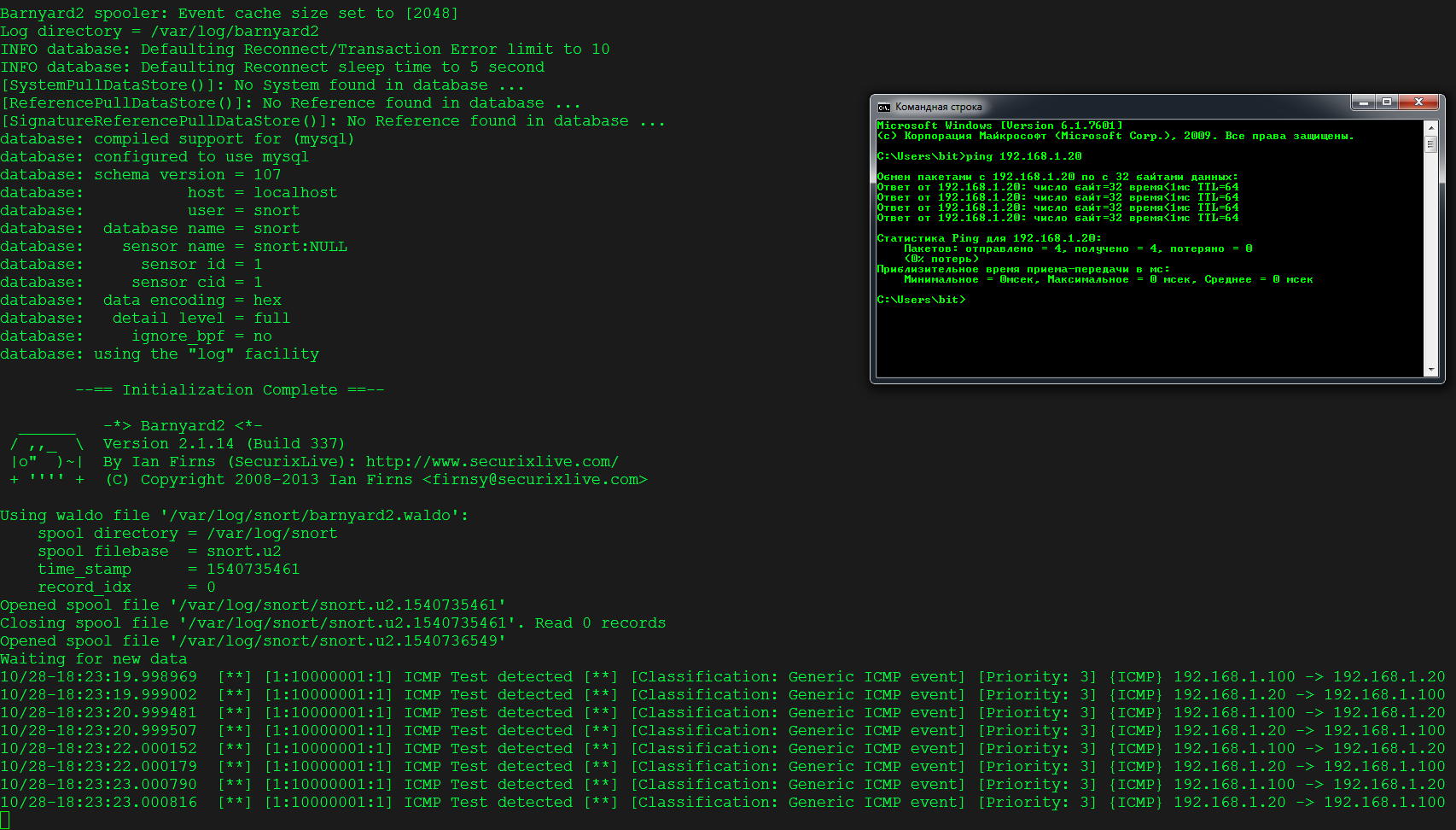 Пингуем наш Snort-server и (если все в порядке) получаем предупреждения.
