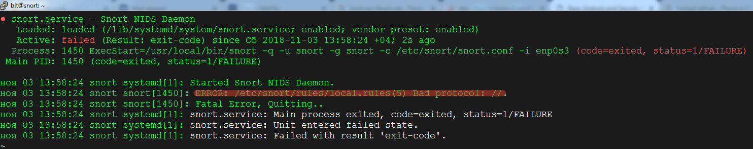 В результате мы увидели несколько оповещений — столько, сколько раз я подключался к данному домену. Если неверно написать правило, Snort не запустится, выдав ошибку и описание, почему он не сможет запуститься.