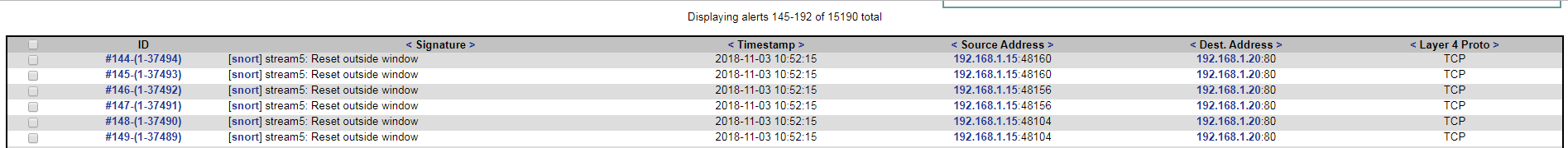 К сожалению, с текущими настройками Snort не в состоянии был определить такого рода атаку и в логах ничего не показал. Пришлось смотреть через tcpdump, идут ли пакеты на сервер вообще.