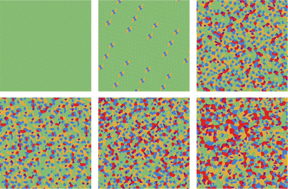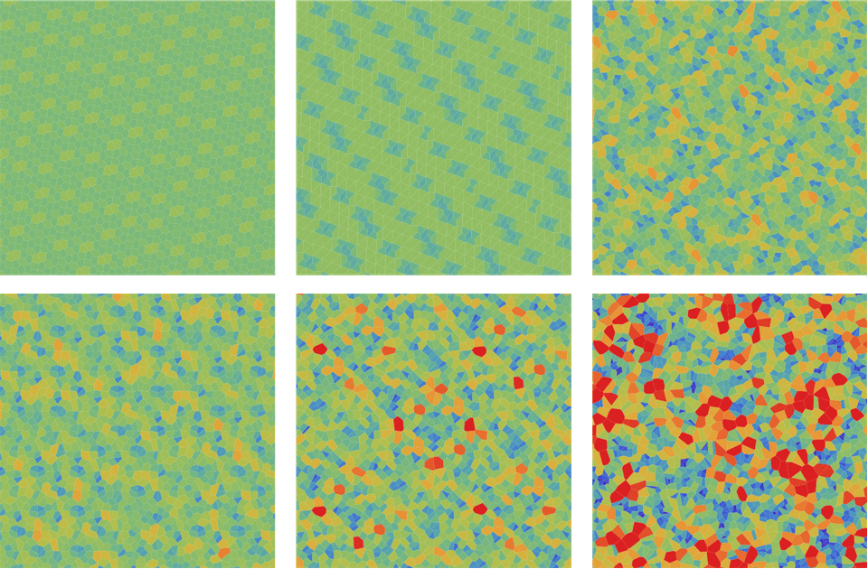 При генерировании с одним зерном паттерн нигде не образуется. Но при использовании i-тых элементов в последовательностях с различными зёрнами паттерн начинает прослеживаться. Причём его вид будет зависеть исключительно от коэффициентов, которые мы подобрали для генератора. Например, есть частный случай линейного конгруэнтного генератора — Randu.