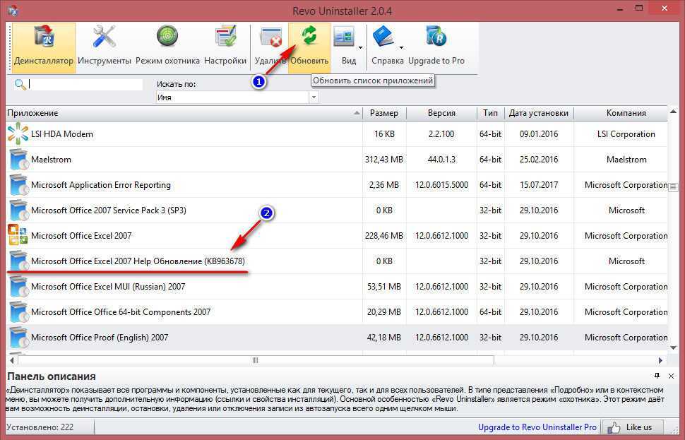 Нажмите ОК, чтобы закрыть окно настроек и обновите список, нажав на соответствующий значок на панели инструментов программы. После этого в списке установленных приложений появятся и обновления Windows. Определить их очень просто — они отмечены специальным значком и, как правило, имеют порядковый номер KB:хххххххххх.