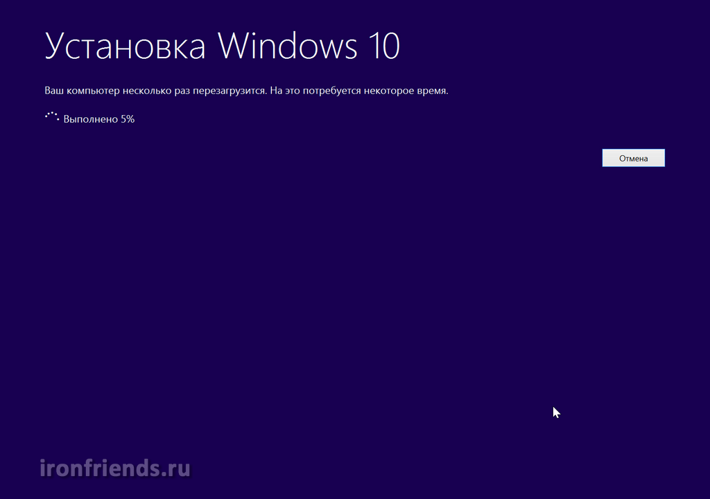 В процессе обновления компьютер должен несколько раз перезагрузиться. Если вы запустили установку с диска или флешки, то при перезагрузке может появляться сообщение с предложением нажать любую клавишу, но ничего нажимать ненужно.