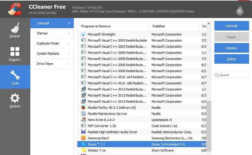 Для очистки временных файлов, которые не удаляются встроенными средствами Windows, также можно использовать приложения типа: