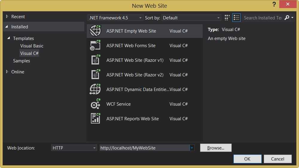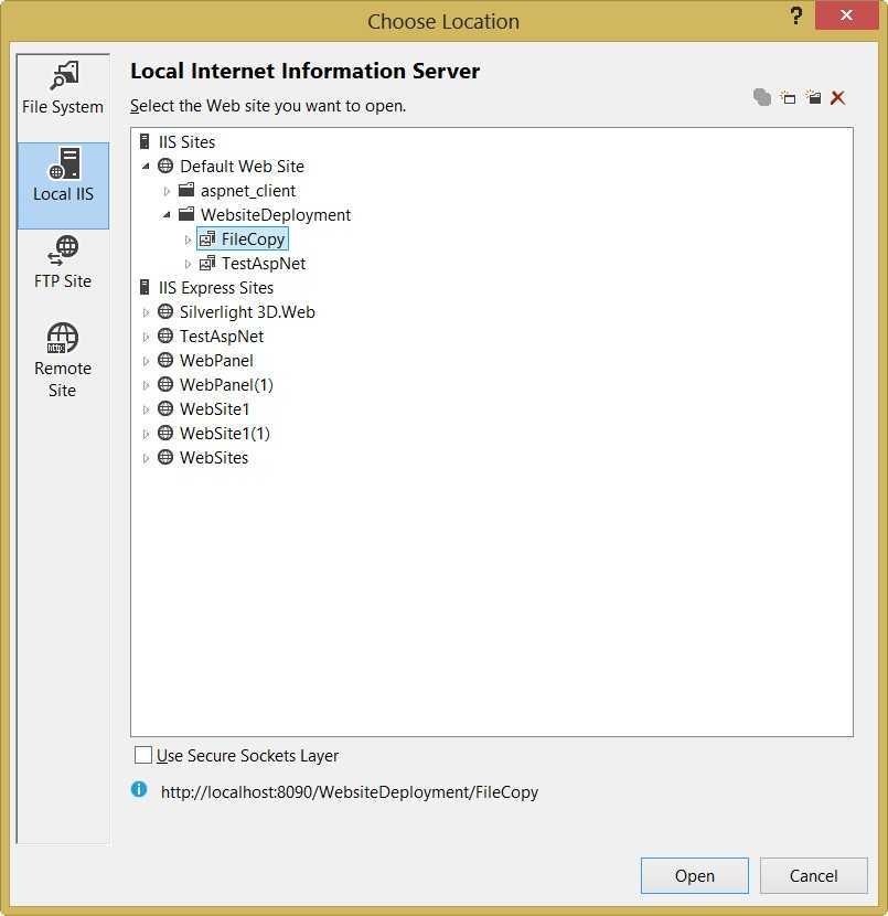 http://localhost/MyWebSite, Visual Studio создаст каталог MyWebSite в виртуальном каталоге C:\Inetpub\Wwwroot используемым по умолчанию: