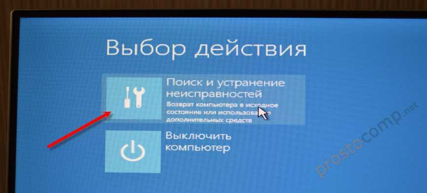 И вот мы оказываемся в том же месте, где остановились ранее (при рассмотрении восстановления из-под работающей системы). Идем дальше, выбирая «Диагностику»: