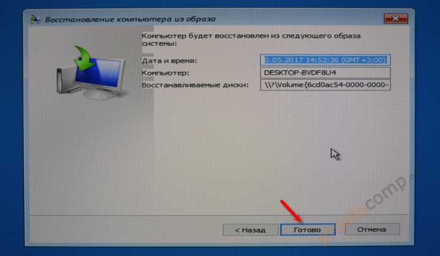 Дальше просто нажимаем «Готово», и подтверждаем замену данных из образа системы.