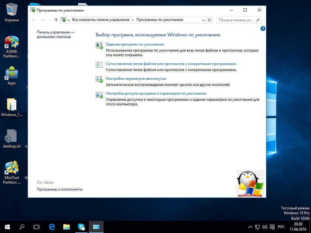 - Выбор стандартных приложений для типов файлов