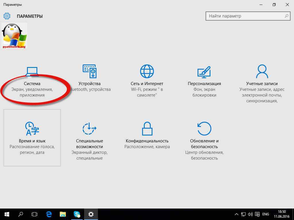 У вас откроется окно Параметры, в нем вам нужно открыть пункт Система.