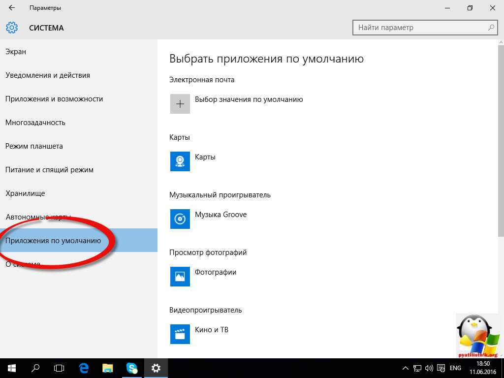 Как происходит назначение программы по умолчанию в Windows 10