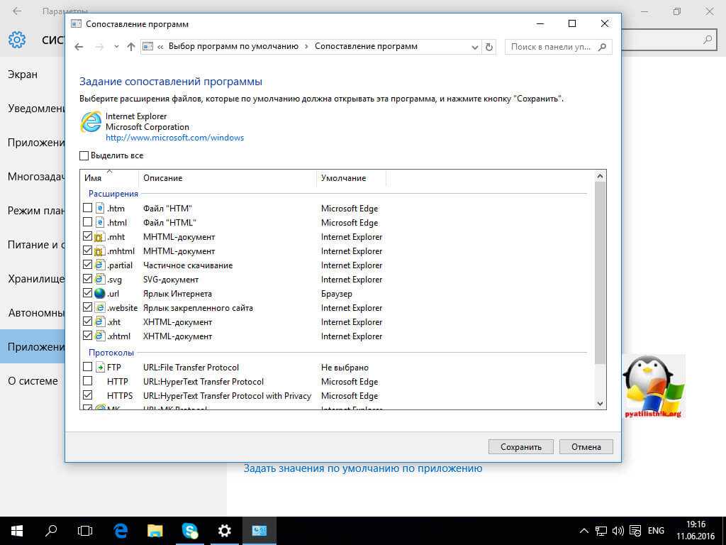 Или могу сказать, что по умолчанию будет Edge, но вот формат https будет открываться Internet Explore, делается это в пункте Выбрать значения по умолчанию для этой программы.