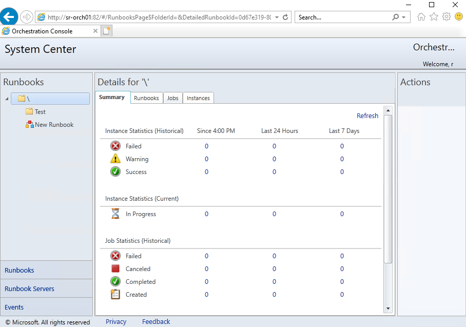 Так же есть веб-консоль для ручного запуска ранбуков (к которым это вообще применимо) и просмотра статуса запущенных ранбуков. Правда, требует Silverlight Скриншот консоли приведен ниже.