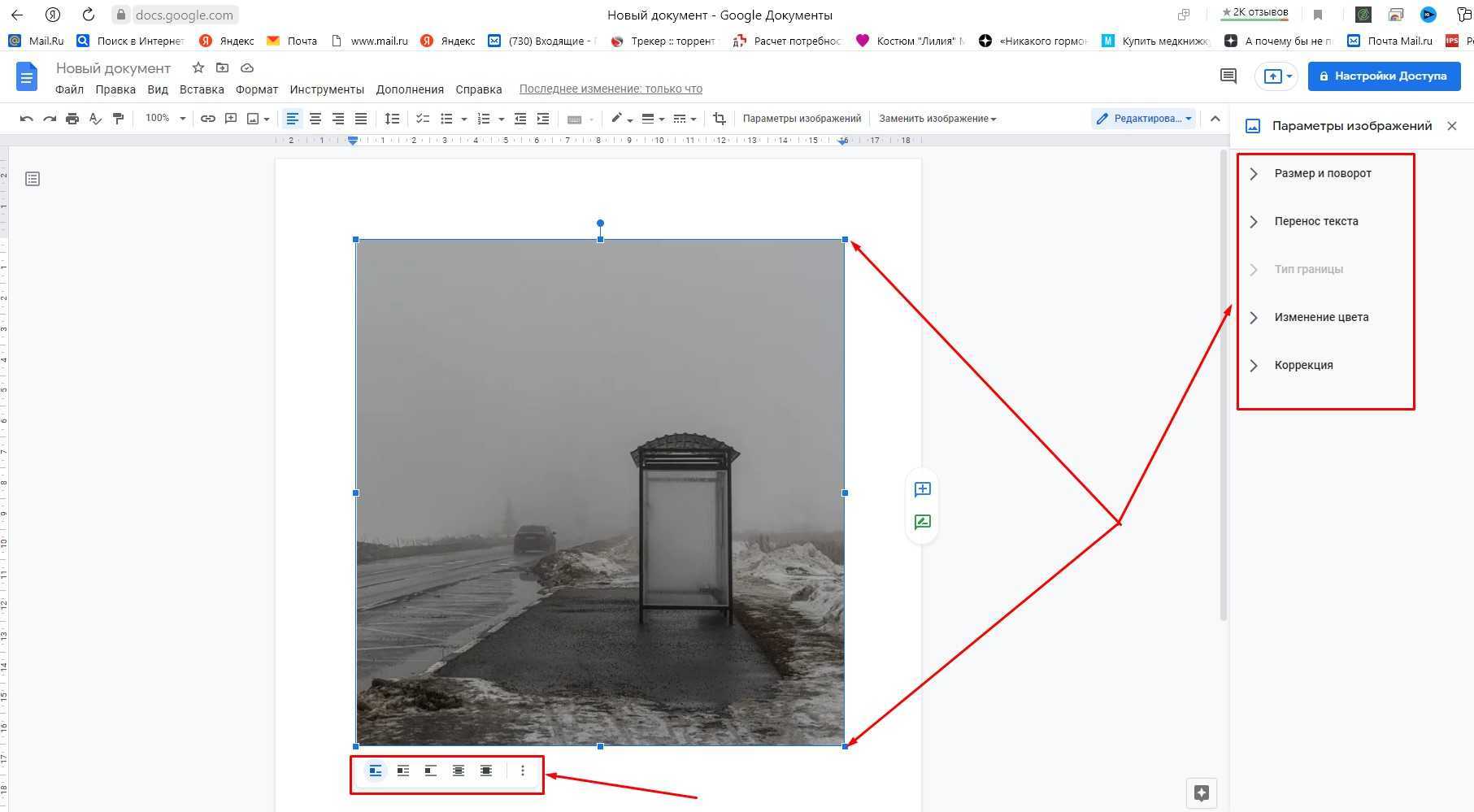 Когда мы говорили о том, что Google Документы — это почти то же самое, что и MS Office, имели ввиду как раз некоторые различия. В частности, отсутствие обтекания как раз одно из них. Вы можете сделать обтекание текстом с помощью таблицы с прозрачными границами. Объедения ячейки и помещая в них текст и изображения вы сможете добиться эффекта «обтекания».