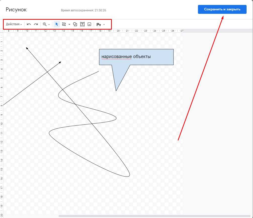 С текстовым редактором от Google Docs реально создать схему или пояснение, надпись и указатель.