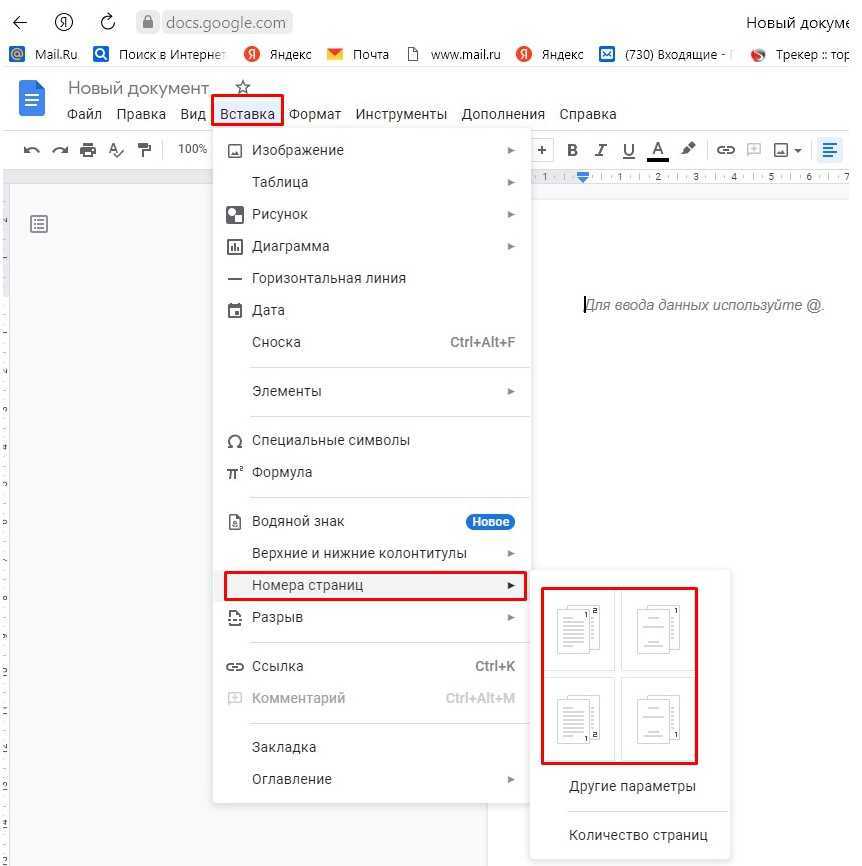 Изначально номер страницы ставится автоматически, но вы можете выбрать расположение по своему усмотрению.