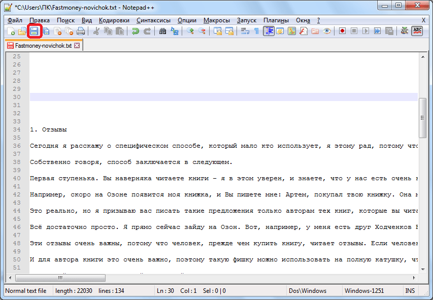 Сохранение можно производить все через тот же раздел «Файл» верхнего меню, перейдя в пункт «Сохранить», либо «Сохранить как». Также сохранить документ можно нажав на иконку в виде дискеты на панели инструментов.