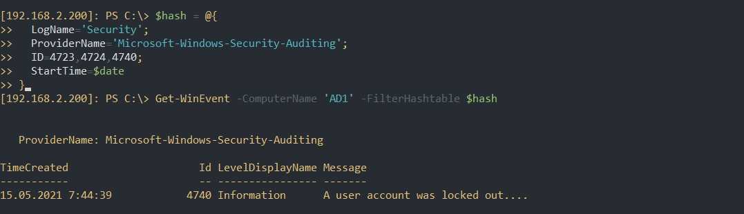 Что бы получить события начинающиеся с определенной даты мы можем использовать существующее свойство ‘StartTime’ в массиве. ‘EndTime’ указывает обратное. В примере ниже мы получим события созданные за сутки: