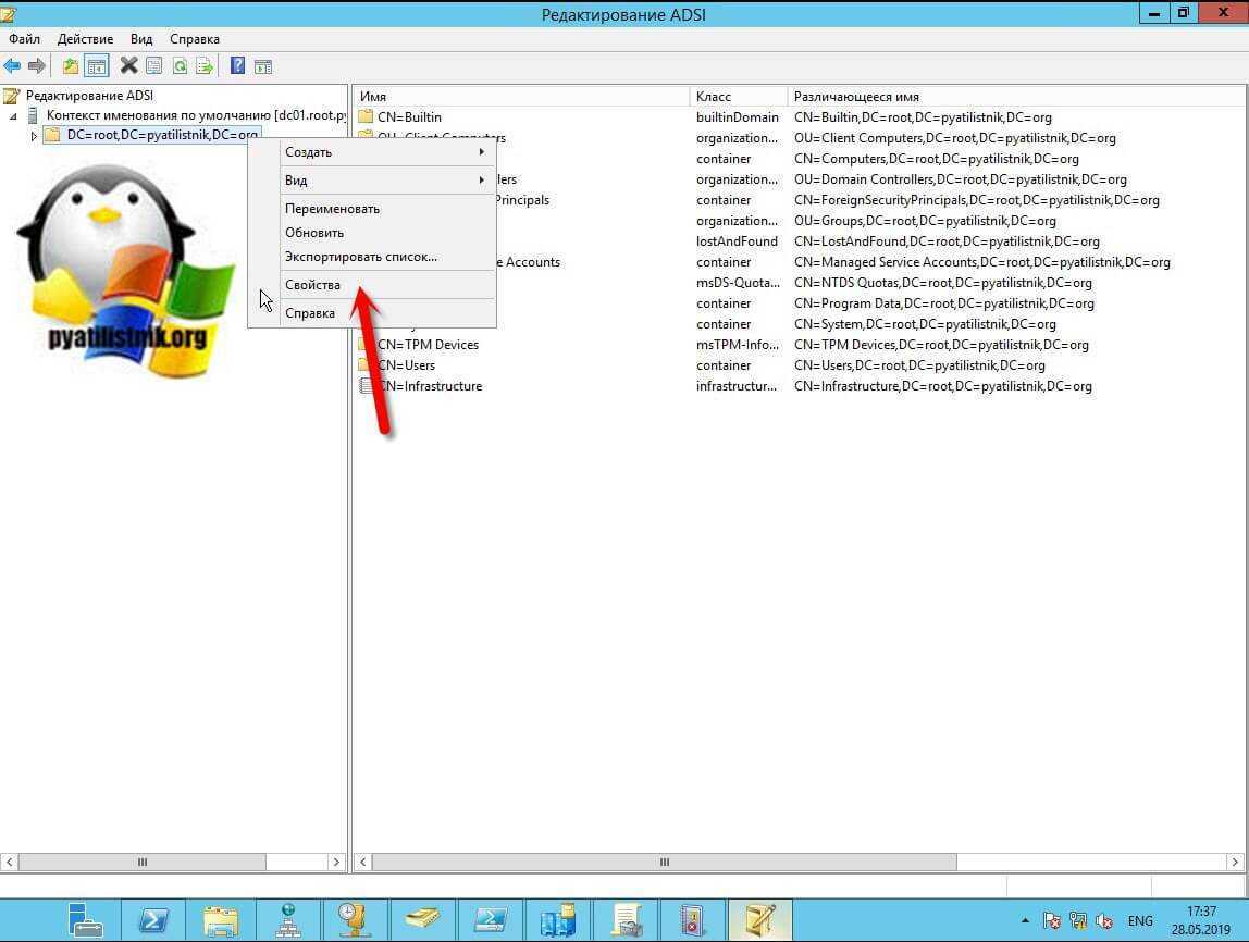 Щелкните правой кнопкой мыши контроллеры домена и выберите пункт «Свойства».