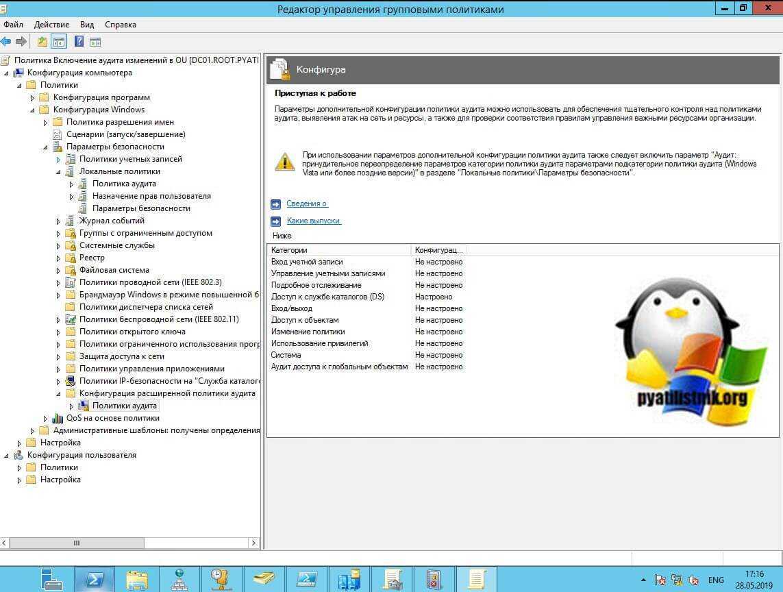Не забывайте, что есть более тонкая настройка аудита изменений в OU Active Directory, и находится она в конфигурации расширенной политики аудита.