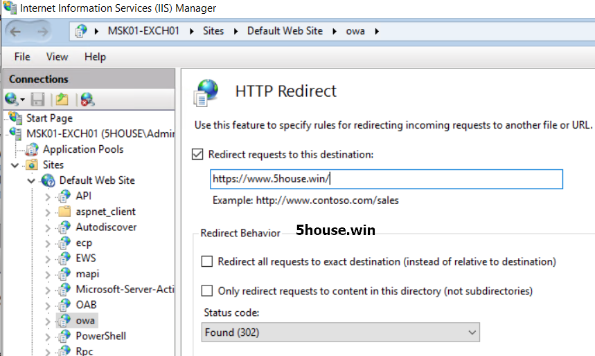 3)Редирект owa на локальный адрес Redirecting owa to external/local adress