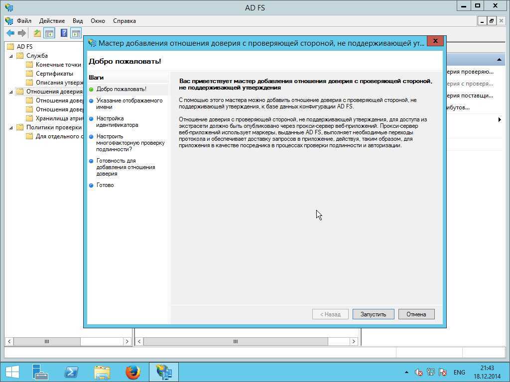 Работа мастера настройки отношения доверия