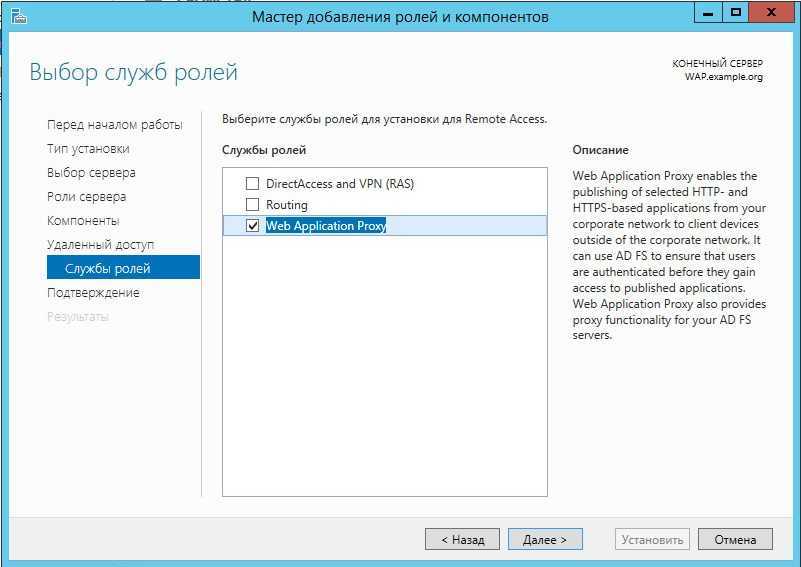 Установка роли Web Application Proxy