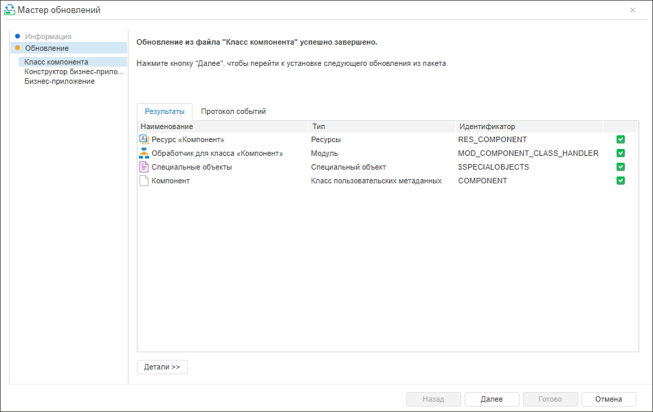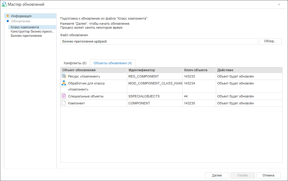 Для обновления версии ранее установленного бизнес-приложения выполните