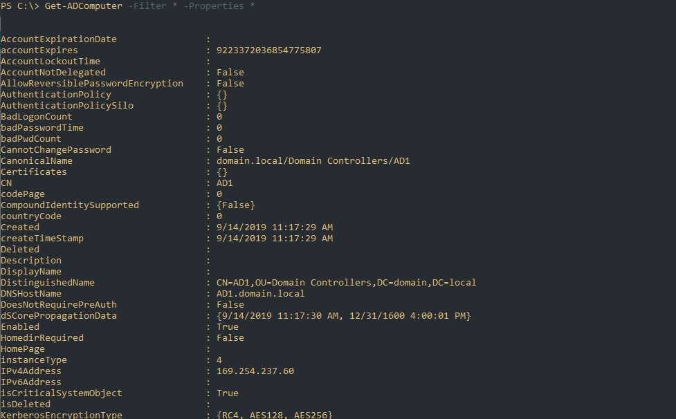 В этих командах ИМЯ_КОМПЬЮТЕРА — это компьютер, который является Контроллером Домена, либо компьютером, на котором установлен модуль Powershell Active Directory.