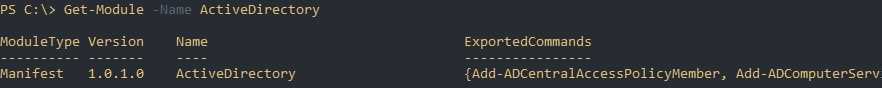 Мы видим, что нас появилось 147 командлетов для работы с Active Directory, которые мы теперь можем использовать для администрирования AD.