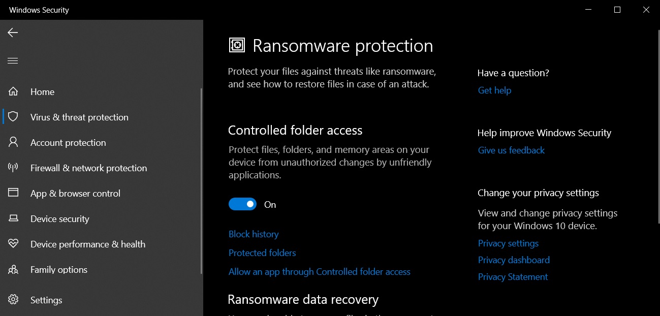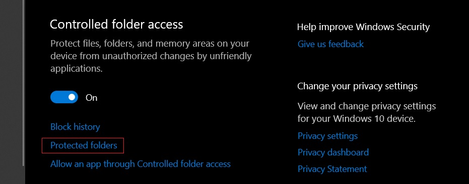 Еще одной интересной функцией безопасности в Windows 10 является «Контролируемый доступ к папкам». Этот параметр дает возможность предотвратить несанкционированный доступ к определенным папкам.
