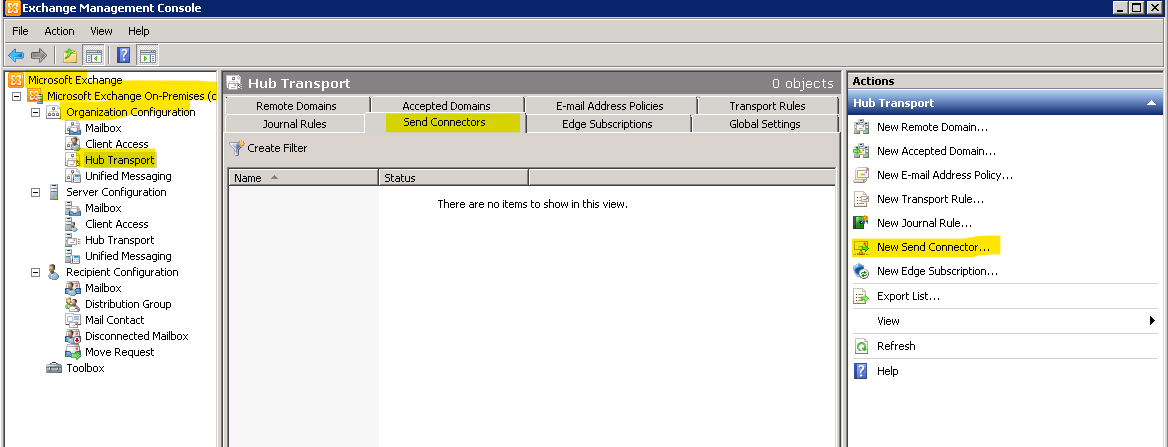 Для того, чтобы пользователи Exchange могли отправлять почту во внешний мир нам необходимо настроить коннектор отправки электронной почты.