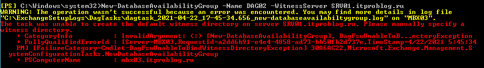 Последним подготовительным шагом для наших серверов Exchange 2019 станет процесс создания группы высокой доступности (Database Availability Group – DAG).