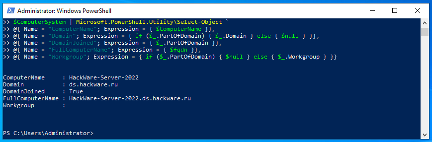 Подробности смотрите в статье: Как в PowerShell узнать, прикреплён ли компьютер к домену или к рабочей группе