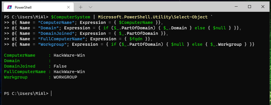 $ComputerSystem | Microsoft.PowerShell.Utility\Select-Object `