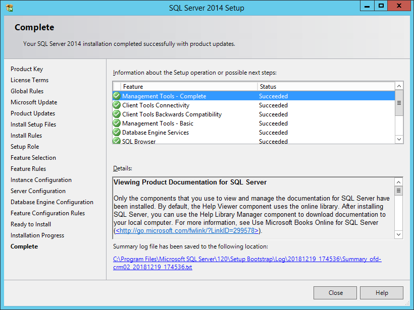 После завершения установки важно прочитать сообщение мастера установки. Дополнительные сведения о файлах журналов установки см