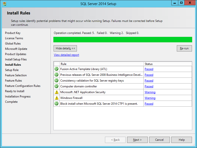 Automatically jump to Install Rules. The installation checks are underway again. I have two warnings, reading.