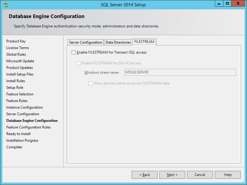 Tab FILESTREAM – here you can enable this support if you want. I don’t need to.